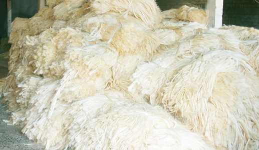 After shredding, the sisal is taken to the shipyard where it is stretched onto wires so that it can be dried in the sun. After a period of around 8 hours, the fibers have lower humidity and the appropriate color to be tied and sold.
